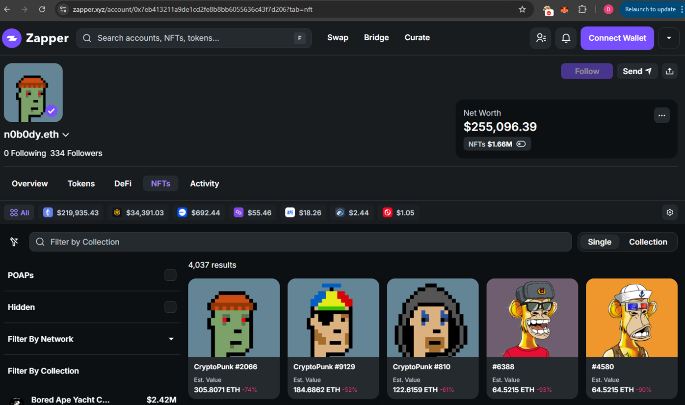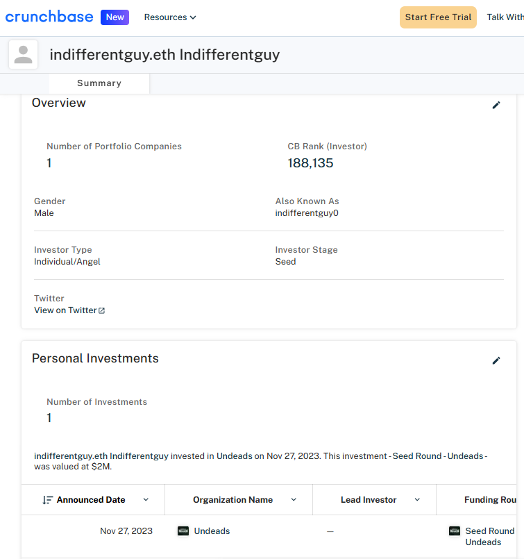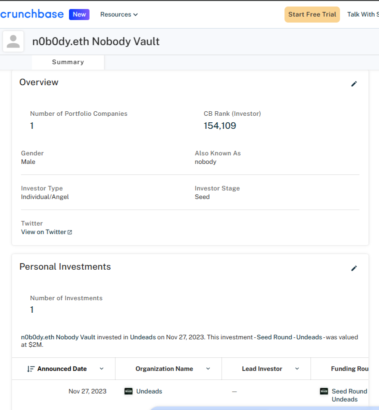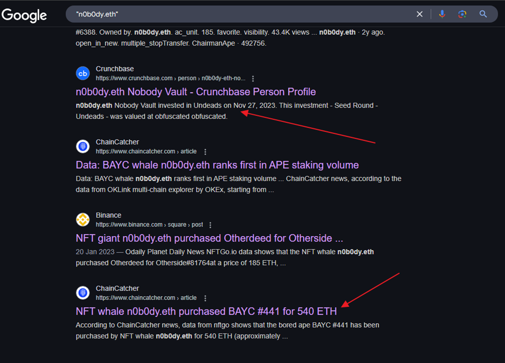 [!IMPORTANT] The report is part of a big invesgation Crypto Report #0134 Stolen 100 ETHs Leads to NFT Whales n0b0dy and indifferentguy (25mln$ worth) and a real company undeads.com (6mln$ investments and 50mln$ coin cap).